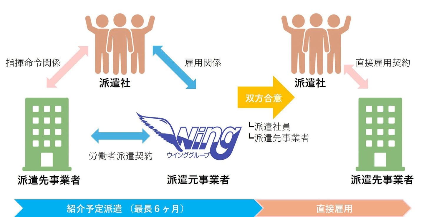 ウイングが紹介するスタッフと企業様との間で「雇用関係」が成立します。