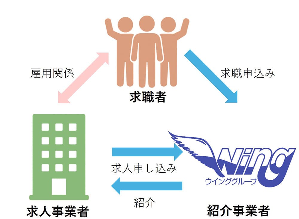 ウイングが紹介するスタッフと企業様との間で「雇用関係」が成立します。